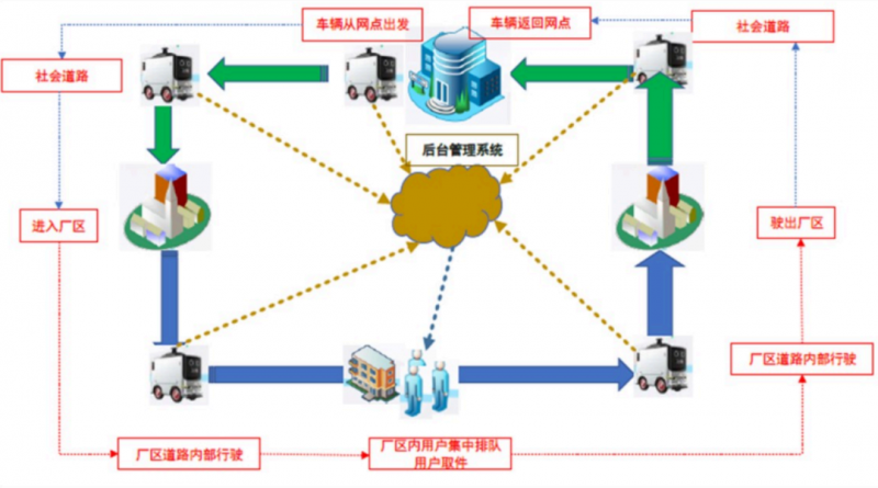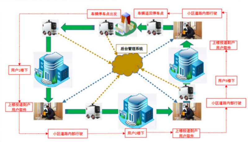 目前無人投遞車作為低速運(yùn)行的末端作業(yè)車輛,結(jié)合無人車的技術(shù)發(fā)展及實(shí)際的試運(yùn)行場景,基于安全性、適用性及可拓展性的考慮,選擇完全封閉或相對封閉的小區(qū)、園區(qū)、廠區(qū)、高等學(xué)府作為無人車投遞場景的應(yīng)用主要模式。
