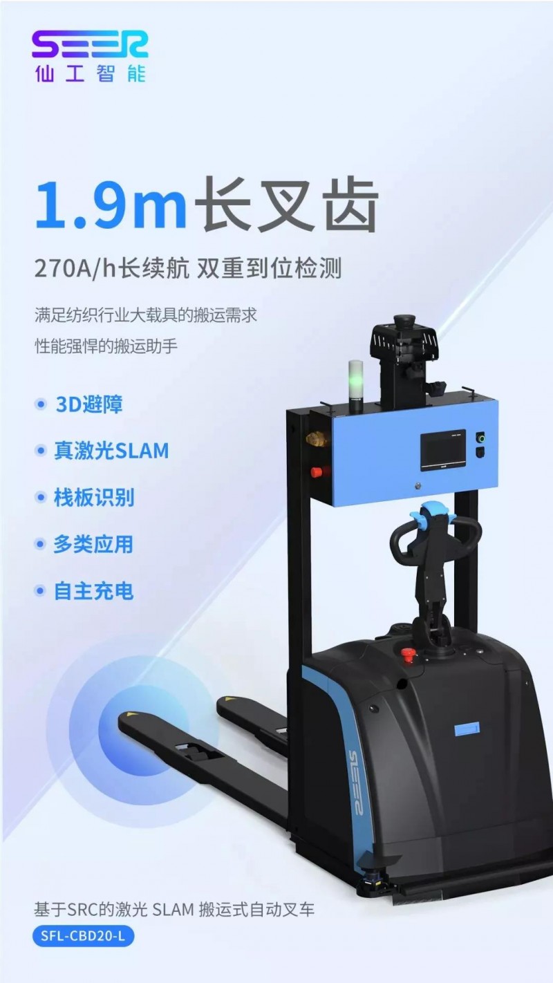 在SFL-CBD20-S的基礎(chǔ)上,仙工智能升級打造了一款紡織行業(yè)專用大載具激光SLAM自動叉車——SFL-CBD20-L,該款產(chǎn)品具有長叉齒、長續(xù)航的特性,加配雙重到位開關(guān),能夠輕松解決紡織行業(yè)物料車裝載不規(guī)則的搬運難題,一次性滿足大載具搬運需求。