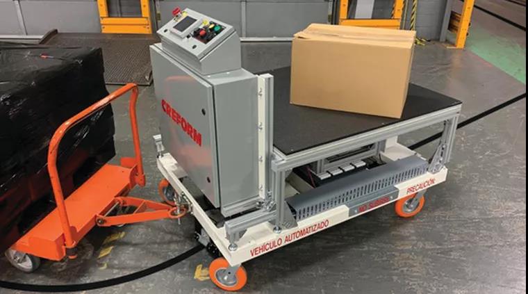 Creform為一家商用車零部件制造商設(shè)計(jì)并制造了一款牽引式自動導(dǎo)引車(AGV)。AGV拖著手推車在倉庫和裝配區(qū)之間來回運(yùn)送生產(chǎn)零件。