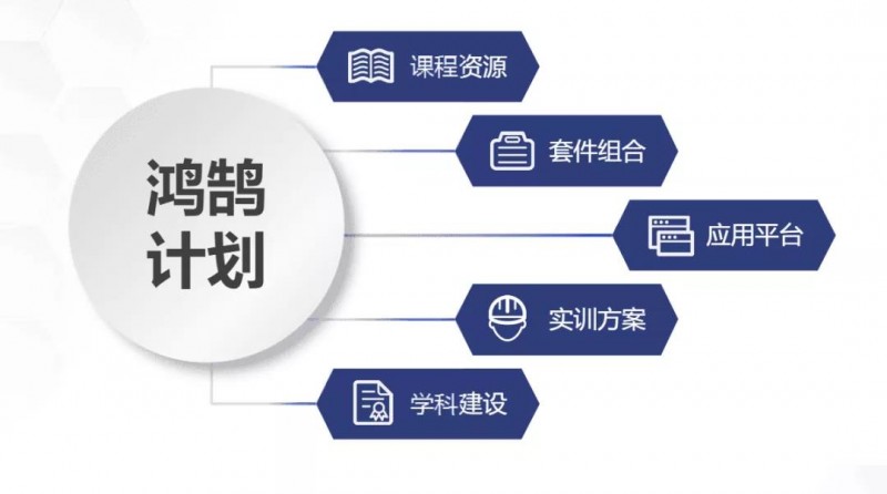 鴻鵠計劃涵蓋了課程資源、套件組合、應用平臺、實訓方案和學科建設等多項專業服務,旨在打通“產研學創”的鏈條,解決高校設備陳舊,優質課程及教學資源缺失等問題,為職校提質培優及科研創新應落地提供大力支持。