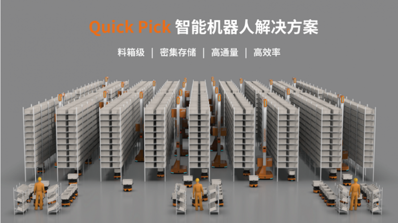 快倉2020年發(fā)布的全球首創(chuàng)Quick Pick智能機(jī)器人解決方案,實(shí)現(xiàn)了“密集存儲+貨到人揀選”的更優(yōu)使用組合,有效解決了“超高出入庫流量”要求下“拆零揀選及海量SKU退貨”人工作業(yè)效率低的痛點(diǎn),其特點(diǎn)是料箱級、密集存儲、高通量、高效率。
