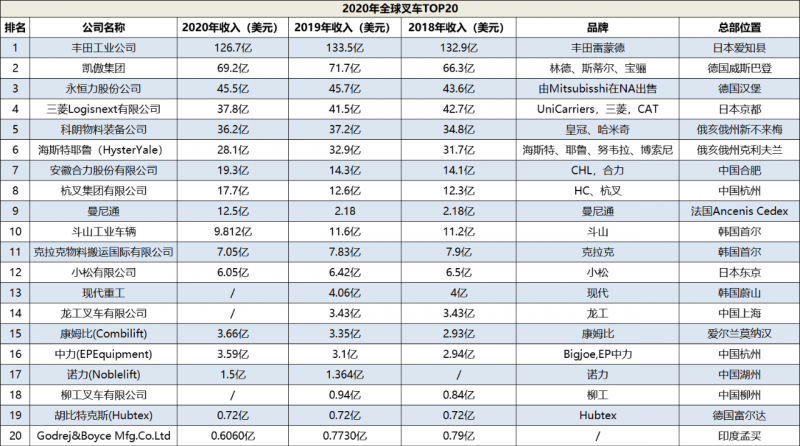 2017年,豐田叉車母公司豐田自動(dòng)織機(jī)株式會(huì)社(TICO)在洞悉到北美物料搬運(yùn)市場(chǎng)中與電子商務(wù)、人工成本以及生產(chǎn)力需求相關(guān)的相關(guān)變化動(dòng)態(tài)后,開設(shè)了新的業(yè)務(wù)分支-“豐田先進(jìn)物流解決方案”(TALS),并成功收購(gòu)美國(guó)AGV供應(yīng)商Bastian Solutions以及荷蘭范德蘭德工業(yè)公司(Vanderlande Industries)。隨后,豐田叉車推出輕便型AGV產(chǎn)品——Key Cart。據(jù)了解,KeyCart具備所有AGV的必要功能,并且成本更有優(yōu)勢(shì),使用更便捷!而在之后兩年一度的亞特蘭大物料搬運(yùn)及物流展覽會(huì)上,豐田也展出了嵌入式AGV和新型拖車AGV。2020年,豐田推出兩款新的自動(dòng)倉(cāng)庫(kù)車,而這是與豐田高級(jí)物流公司Bastian Solutions合作開發(fā)的。據(jù)豐田表示,隨著物料搬運(yùn)業(yè)務(wù)發(fā)現(xiàn)更多創(chuàng)新方法來(lái)集成倉(cāng)庫(kù)技術(shù),AGV將得到廣泛使用。凱傲集團(tuán)旗下的林德物料搬運(yùn)專注于叉車設(shè)備及內(nèi)部物流系統(tǒng)解決方案的集成服務(wù),在全球100多個(gè)國(guó)家及主要地區(qū)均設(shè)有銷售及服務(wù)分支機(jī)構(gòu)。其中,林德(中國(guó))在2015年布局叉車AGV業(yè)務(wù),2019年成立林德中國(guó)移動(dòng)機(jī)器人事業(yè)部,2020年,鑒于中國(guó)市場(chǎng)的高速發(fā)展,設(shè)立亞太AGV制造和測(cè)試中心,進(jìn)行所有移動(dòng)機(jī)器人產(chǎn)品的統(tǒng)籌研發(fā)。另一方面,在2016年時(shí)候,凱傲集團(tuán)也完成了對(duì)自動(dòng)化和供應(yīng)鏈優(yōu)化領(lǐng)域?qū)<业埋R泰克的標(biāo)志性收購(gòu)。在2017年,德馬泰克宣布成立“移動(dòng)自動(dòng)化卓越中心(COE)”,將德馬泰克,英杰明自動(dòng)化和 NDC的AGV 產(chǎn)品進(jìn)行技術(shù)整合。2019年,德馬泰克第一臺(tái)本土化生產(chǎn)、結(jié)合全球頂尖技術(shù)的AGV在2019 CeMAT ASIA亞洲國(guó)際物流展上展出。目前,凱傲集團(tuán)旗下的林德物料搬運(yùn)已完成全系列叉車AGV產(chǎn)品開發(fā)及投放,涵蓋P\T\L\K\R產(chǎn)品系列。永恒力成立于1953年,是全球領(lǐng)先的電動(dòng)叉車制造商和智能物流裝備系統(tǒng)集成商。永恒力擁有超過(guò)56年的AGV研發(fā)與制造經(jīng)驗(yàn)。其叉車式AGV是以永恒力標(biāo)準(zhǔn)系列叉車為基礎(chǔ)開發(fā)的自動(dòng)導(dǎo)引叉車。使用一流的激光導(dǎo)航及安全傳感器控制系統(tǒng),由于具備先進(jìn)的安全控制系統(tǒng),也可以在人工環(huán)境下使用。當(dāng)前,永恒力AGV產(chǎn)品組合已經(jīng)非常廣泛,幾乎可為所有應(yīng)用場(chǎng)景提供合適的車輛,包括牽引車AGV、托盤車AGV、堆垛車AGV等,同時(shí)還可以根據(jù)客服需求提供定制化的產(chǎn)品。2018年,原菱重叉車(上海)有限公司與力至優(yōu)叉車(上海)有限公司經(jīng)過(guò)全面整合后,在上海成立新的銷售公司,公司名稱為三菱物捷仕叉車(上海)有限公司,負(fù)責(zé)旗下三菱叉車、力至優(yōu)、TCM、歐克拉(ROCLA)四個(gè)品牌在中國(guó)區(qū)域的銷售與服務(wù)。而Rocla是全球知名電動(dòng)倉(cāng)儲(chǔ)設(shè)備和無(wú)人駕駛搬運(yùn)系統(tǒng)(AGV)的生產(chǎn)制造商,其ROCLA品牌具有廣泛的知名度。在2007年,Rocla便推出了世界上第一個(gè)系列化制造的全模塊化AGV小車,2010年,Rocla研發(fā)的AGV升級(jí)出用于托盤處理和訂單揀選的新功能,不但重新定義了自動(dòng)導(dǎo)引車的自動(dòng)化功能,也開拓了更復(fù)雜的應(yīng)用環(huán)境。據(jù)悉,目前Rocla已成為電動(dòng)倉(cāng)庫(kù)卡車和叉車以及自動(dòng)引導(dǎo)車輛(AGV)的主要開發(fā)商和制造商,交付數(shù)量已超過(guò)7000臺(tái)達(dá)1000多個(gè)項(xiàng)目。Crown-科朗叉車是世界最大的物料搬運(yùn)設(shè)備制造商之一,對(duì)AGV等自動(dòng)化、智能化物料搬運(yùn)設(shè)備早有研發(fā);特別是該公司推出的QuickPick Remote快速智能揀選系統(tǒng)(簡(jiǎn)稱“QPR智能揀選系統(tǒng)”),針對(duì)揀選作業(yè)痛點(diǎn),將自動(dòng)導(dǎo)航系統(tǒng)和智能控制系統(tǒng)應(yīng)用在叉車上使其能夠自動(dòng)行駛,已應(yīng)用在零售、電商、醫(yī)藥、化妝品、汽車制造以及快消品等行業(yè)的訂單揀選、生產(chǎn)線補(bǔ)料方面,為客戶企業(yè)優(yōu)化工作流程、提高作業(yè)效率提供了重要助力。目前,科朗擁有專業(yè)的低位揀選車GPC和PC系列,也擁有針對(duì)高位揀選的SP系列;而且每款車都可以根據(jù)客戶的工況進(jìn)行部分定制。海斯特誕生于1929年,在80多年的發(fā)展過(guò)程中憑借堅(jiān)固耐用的品質(zhì)贏得廣泛聲譽(yù),其母公司美國(guó)海斯特-耶魯集團(tuán)(HYSTER-YALE)更是全球最大的叉車制造商之一。