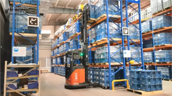 未來機器人前移式無人叉車最大舉升為9.4米,叉臂根部安裝了感知模塊,可以對橫梁狀況、庫位占用情況進行安全檢測,為后續入庫作業提供信息輸入。且具備自適應模塊,可以很好地滿足多次重復精準叉取需求,提高作業的安全系數。同時其機器人管理系統可以對接自動門,當無人叉車行駛到卷閘門附近時,系統提前發出指令到卷閘門,節省了人工操作的時間,保障物流通暢。