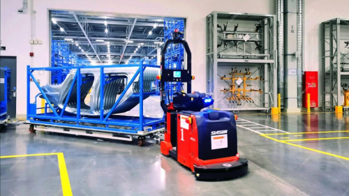 圖:新松叉車AGV發(fā)動(dòng)機(jī)工廠應(yīng)用