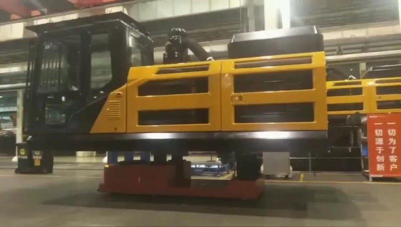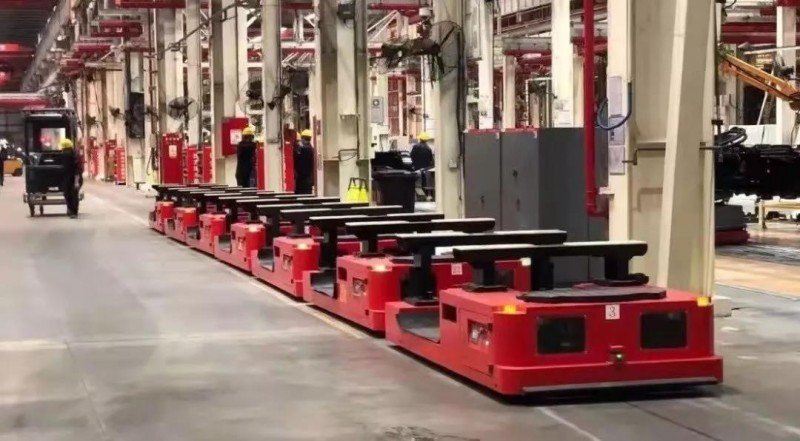 大挖工廠(chǎng)使用國(guó)自20噸重載AGV+30噸RGV,串聯(lián)起產(chǎn)線(xiàn)裝配工位,實(shí)現(xiàn)上線(xiàn)、下線(xiàn)全程智能化調(diào)度。