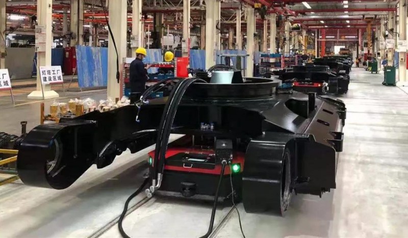 ◆ 采用AGV進(jìn)行柔性智能裝配的挖掘機(jī)生產(chǎn)線(xiàn)。