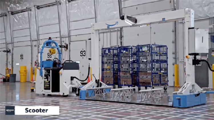 其中 Scooter 一次可以運(yùn)輸多臺經(jīng)過固定好的手推車,通過機(jī)器設(shè)置的程序,將手推車運(yùn)送至指定位置。