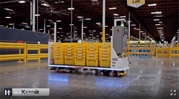 Kermit 相比于 Scooter 體型更小,會跟隨地面特制的布線運(yùn)行,來運(yùn)送儲物筐。亞馬遜表示,今年至少將會在北美的十幾個站點(diǎn)部署 Kermit,同時(shí)也將嘗試著對 Scooter 進(jìn)行極少量的部署運(yùn)作。