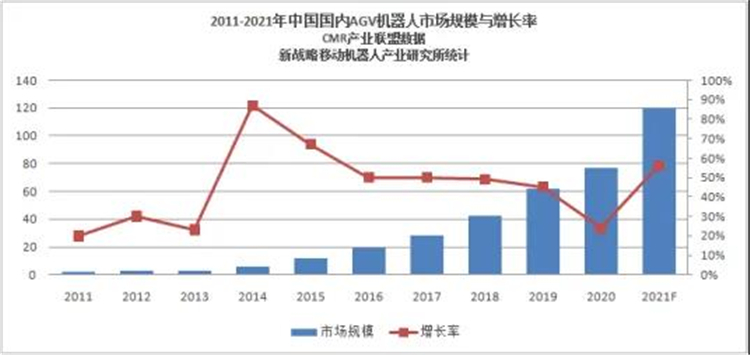 數(shù)據(jù)來源:CMR產(chǎn)業(yè)聯(lián)盟,新戰(zhàn)略移動(dòng)機(jī)器人產(chǎn)業(yè)研究所(注:2021年年度數(shù)據(jù)以最終發(fā)布為準(zhǔn),目前預(yù)測(cè)120億元)