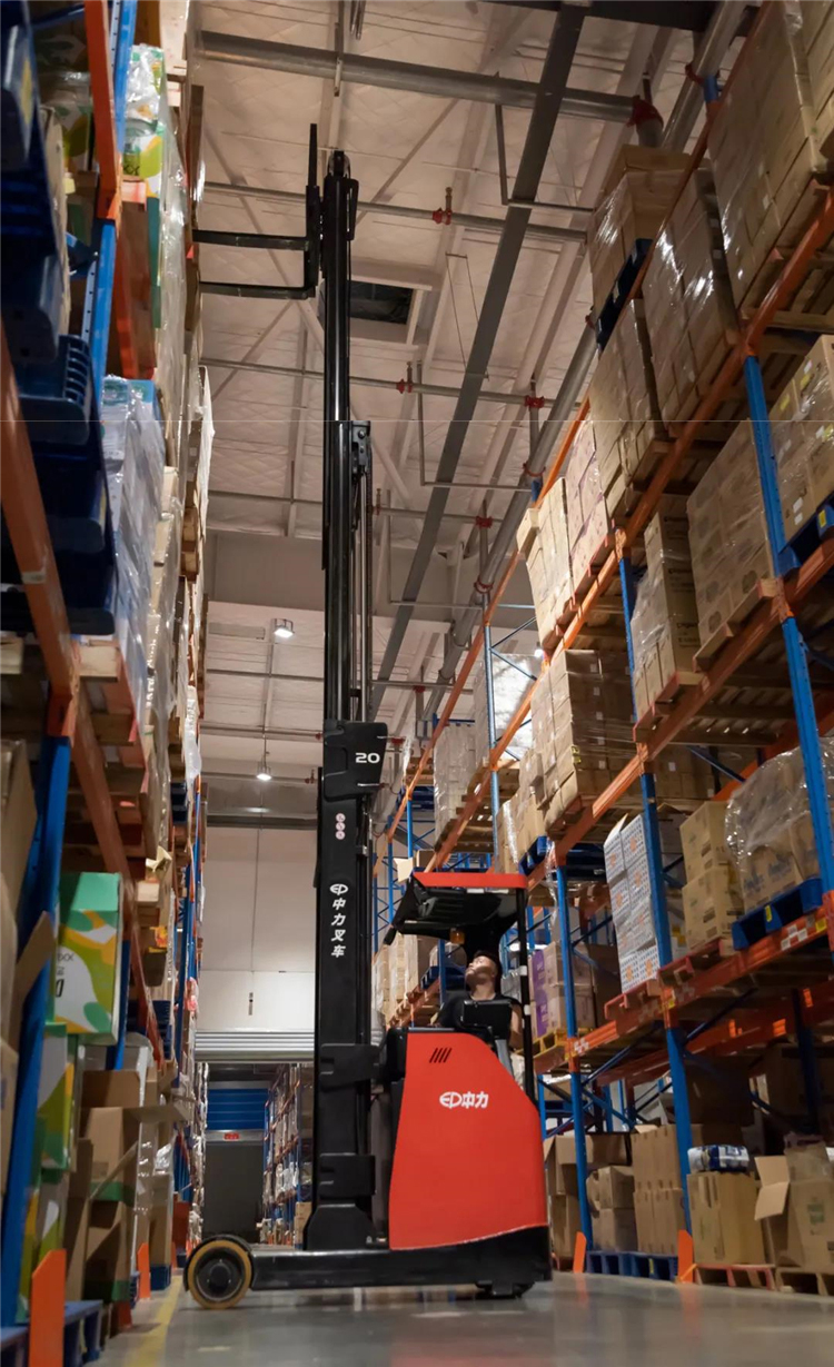 帶抱夾的電動平衡重叉車,用于移動家用電器等較大不宜顛簸的包裹;前移式叉車在8米以上高架的倉庫中垂直堆垛;叉車用于裝卸貨車,快速轉運;電動托盤車在倉庫中轉移包裹;電動堆高車在終端營業部門裝卸貨物等等,中力龐大車隊全面協作、全力打造京東物流園區高效的物流搬運體系。