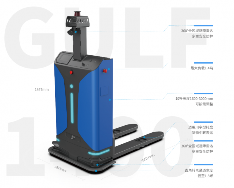 此外,Gulf-1400-CDD無人叉車搭載無線對接模塊,可以對接車間內(nèi)的自動門,達(dá)到自動開關(guān)的效果,實現(xiàn)跨場景高效搬運。