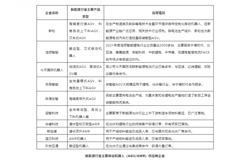 新松在2021依靠在前段工序積累的競爭優(yōu)勢,2021年拿下了多個鋰電行業(yè)訂單;佳順智能作為最早進(jìn)入鋰電行業(yè)的AGV企業(yè)之一,與多家鋰電企業(yè)建立了合作關(guān)系。據(jù)張金亮透露,當(dāng)前佳順智能在新能源業(yè)務(wù)已占公司整體業(yè)務(wù)的40%,未來占比還將進(jìn)一步提高。