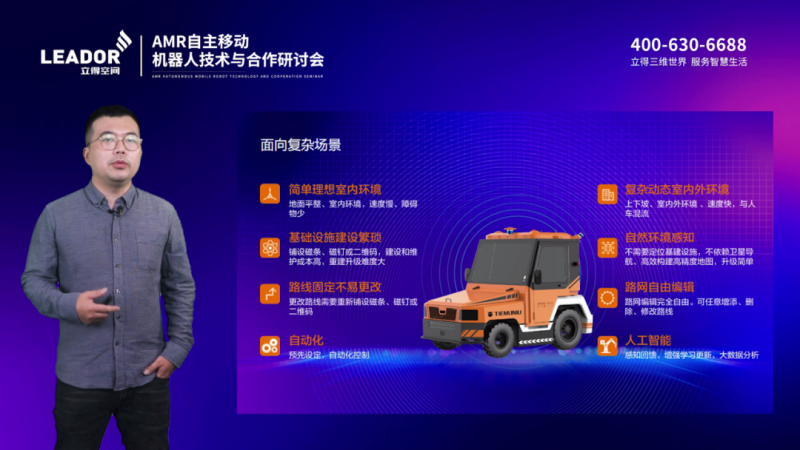 立得空間智能機(jī)器事業(yè)部銷售總經(jīng)理黃維分享了立得空間在AMR自主移動機(jī)器人領(lǐng)域的合作案例。他指出,立得空間利用核心技術(shù)和產(chǎn)品已為數(shù)千家底盤廠家賦能。其中,核心產(chǎn)品“路霸”機(jī)器人行進(jìn)系統(tǒng)(PNS)采用3Dslam技術(shù)路線,經(jīng)過五年的迭代更新,適應(yīng)各種復(fù)雜場景,在室內(nèi)外、上下坡、高速和人車混流等場景實現(xiàn)定位導(dǎo)航,滿足不同場景下的柔性導(dǎo)航需求。