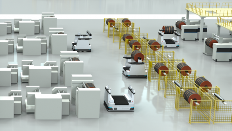 國(guó)內(nèi)某鋰電池制造龍頭企業(yè)在前工序車(chē)間引入30臺(tái)極智嘉雙舉升機(jī)器人,實(shí)現(xiàn)涂布、輥壓、模切等工序3噸重物料的自動(dòng)搬運(yùn)。